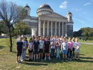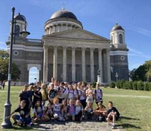 A 4.évfolyam idén vonattal Esztergomba kirándult, ahol rengeteg élménnyel gazdagodtunk. Elsőként a Duna Múzeumba mentünk, ahol érdekes kiállításokat láttunk a víz világáról. Kipróbáltuk az interaktív eszközöket, megtanultuk, hogyan működik egy vízimalom, és sok új dolgot tudtunk meg a Duna folyóról és a víz fontosságáról.  Ezután megtekintettük a  Nagyboldogasszony- és Szent Adalbert-főszékesegyházat az altemplomtól a kincstáron át a kupoláig. Végül minden gyereknek sikerült leküzdenie a félelmeit, és a 413 lépcső megtétele után végig mert menni a kupola körüli kilátón. A vasútállomásra kisvonat vitt minket, melynek útja során megnézhettük Esztergom belvárosát. Sok élménnyel és új ismerettel tértünk haza. Ez a kirándulás igazán emlékezetes marad számunkra!