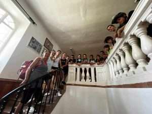 Reggel egy páratlan reggelit fogyasztottunk el Szanticskán (a gyerekek 9-10 karéj kenyér után hagyták abba a számolást), majd a bringákkal minden erőnket bevetve kapaszkodtunk fel a zsákfaluból. Az első kemény kilométereken túljutva jöhetett a jól megérdemelt gurulás. Utunk során meglátogattuk a felsővadászi Ràkóczi-kastélyt, ahol a műtárgyak közvetlen szomszédságában ma egy általános iskola üzemel. Egy gyors csoportkép után egy különleges program várt még ránk: a lövészet kipróbálása a közeli Kajuha-lőtéren. A gyerekek profi oktatók segítségével próbálhatták ki a légpuskával való célbalövést, és egy kis versenyen is megmérettethették ügyességüket. Remekül érezte magát mindenki! Ezután elfoglaltuk utolsó szálláshelyünket az Irotai Erdei Iskolában. A vacsora elfogyasztása után Kahoot- kvízzel készültünk a gyerekeknek, ahol az elmúlt hét eseményeit elevenítettük fel újra. Ezután mindenki átvehetett egy kis személyre szóló ajándékot a sikeres tábori részvételért. Csodával határos módon még mindenkinek volt tartalék energiája, így sokan a focipályán termettek, ahol komoly mezítlábas meccs zajlott le, miközben a pálya körül elszántan bicikliztek azok, akiknek még nem volt elég a nyeregben töltött idő. Sötétedés után még együtt felgyalogoltunk az Irotán található görögkatolikus templomhoz, majd következett a jóleső pihenés a vendéghàzakban.