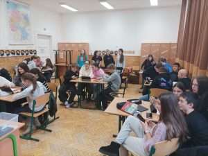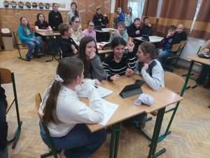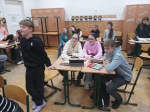 December 11-én irodalmi “kvíz-showt” rendeztünk iskolánkban. A népszerű televíziós vetélkedők hangulatát idéző háziverseny középpontjában a közelgő ünnep állt: magyar írók és költők karácsonyi műveivel kapcsolatban mérték össze tudásukat a felső tagozatos osztályokat képviselő csapatok. Mivel a játékosok – a közismert műsor mintájára – igénybe vehették a “közönség” segítségét, sőt éltek a telefonos segítség lehetőségével is, a jó hangulat mindvégig kitartott a rendhagyó tudáspróbán.