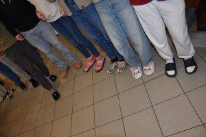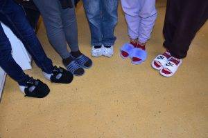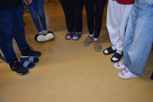 Az idei tanévben a Diákönkormányzat javaslatára egy igazán különleges és jókedvű eseménnyel készültünk: Papucs&Mamusz napot rendeztünk! Az időzítés sem volt véletlen: a szombati péntekre, a 3. adventi gyertya meggyújtásának ünnepélyes napjára esett a program. Az iskola folyosóit és termeit ellepték a kreatív és mókás lábbelik: színes, bolyhos papucsok, vicces figurás mamuszok, és persze a klasszikus, komoly nagypapa-stílusú házi cipők is szép számban képviseltették magukat.