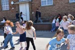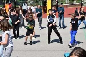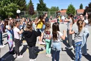 Április 30-án, szerdán megemlékeztünk a Tánc Világnapjáról. 💃🕺 Ebből az alkalmából zenétől volt hangos az iskola. 🎶📻 A 3. és 4. óra utáni szünetekben az iskolarádió népszerű magyar, német és angol dalokat játszott, mint például a Kacsatánc, Nád házam teteje, Megy a gőzös, Fliegerlied, vagy a Macarena.